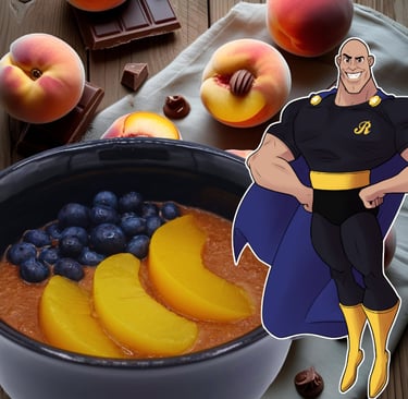 Mix chocolate protein powder with Roger's Rice to create a chocolatey delight. Top off with sliced peaches and blueberries.....delicious!